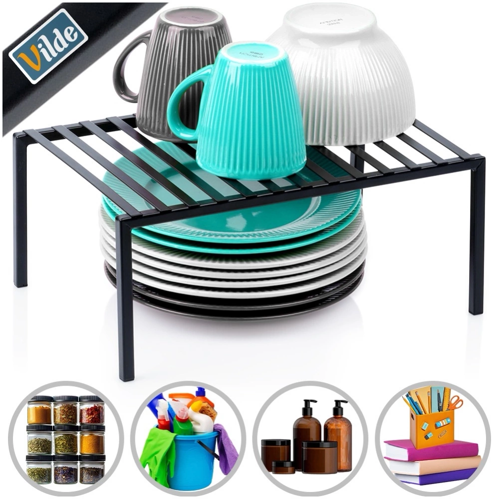 - Półka kuchenna idealna do organizacji przestrzeni w szafkach, na blacie lub w spiżarni. Pozwala podzielić wnętrze szafki na dwa poziomy lub stworzyć dodatkowe miejsce do przechowywania na blacie.