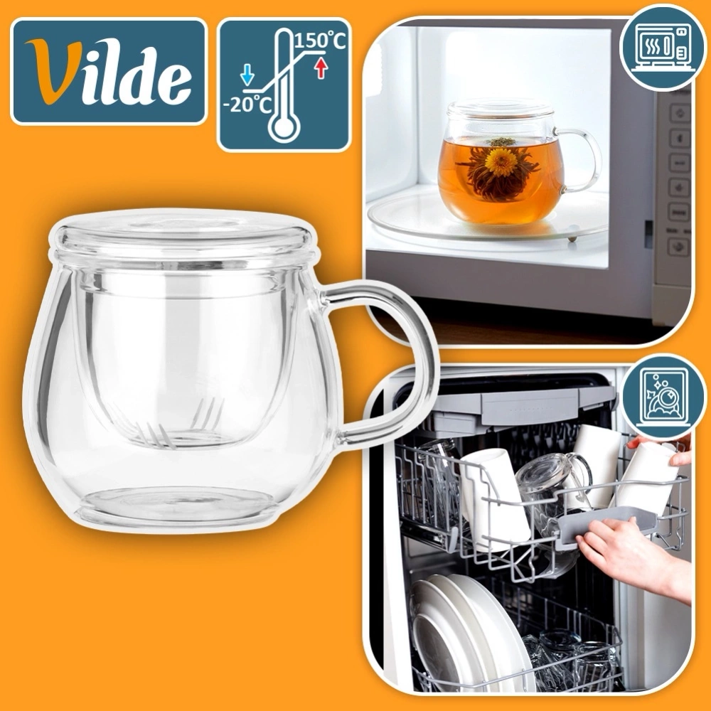 Efektowny kubek z zaparzaczem i pokrywką. Serwowane w nim napoje prezentują się bardzo efektownie, więc świetnie sprawdzi się również w lokalach gastronomicznych do serwowania w oryginalny sposób herbaty. Klasyczny kształt i oryginalne rozwiązanie z zaparzaczem sprawi, że efektownie prezentuje się na stole. Oryginalny produkt marki Vilde. Wyprodukowano zgodnie z europejskimi standardami.