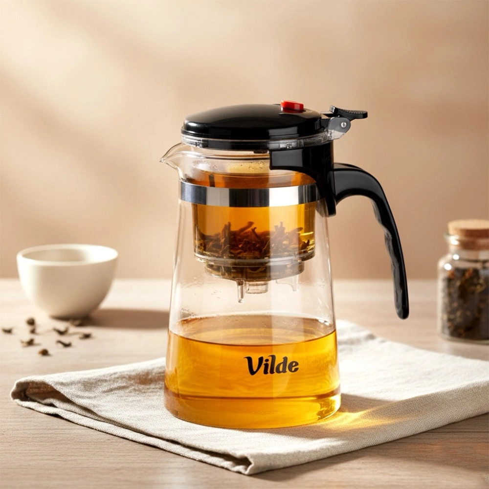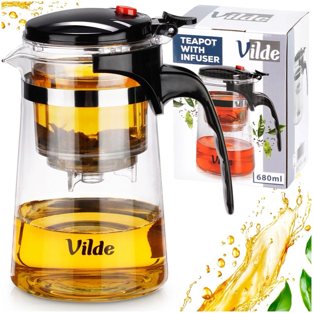 Szklany dzbanek z zaparzaczem to idealne, kompaktowe rozwiązanie do parzenia herbaty i ziół. Dzbanek posiada unikalnym systemem spustowym, który pozwala kontrolować moc esencji i od razu parzyć kolejną porcję. Dzięki temu systemowi oraz odporności na skrajne temperatury dzbanek ten jest wyjątkowo wygodny i uniwersalny w codziennym użytkowaniu. Oryginalny produkt marki Vilde. Wyprodukowano zgodnie z europejskimi standardami.