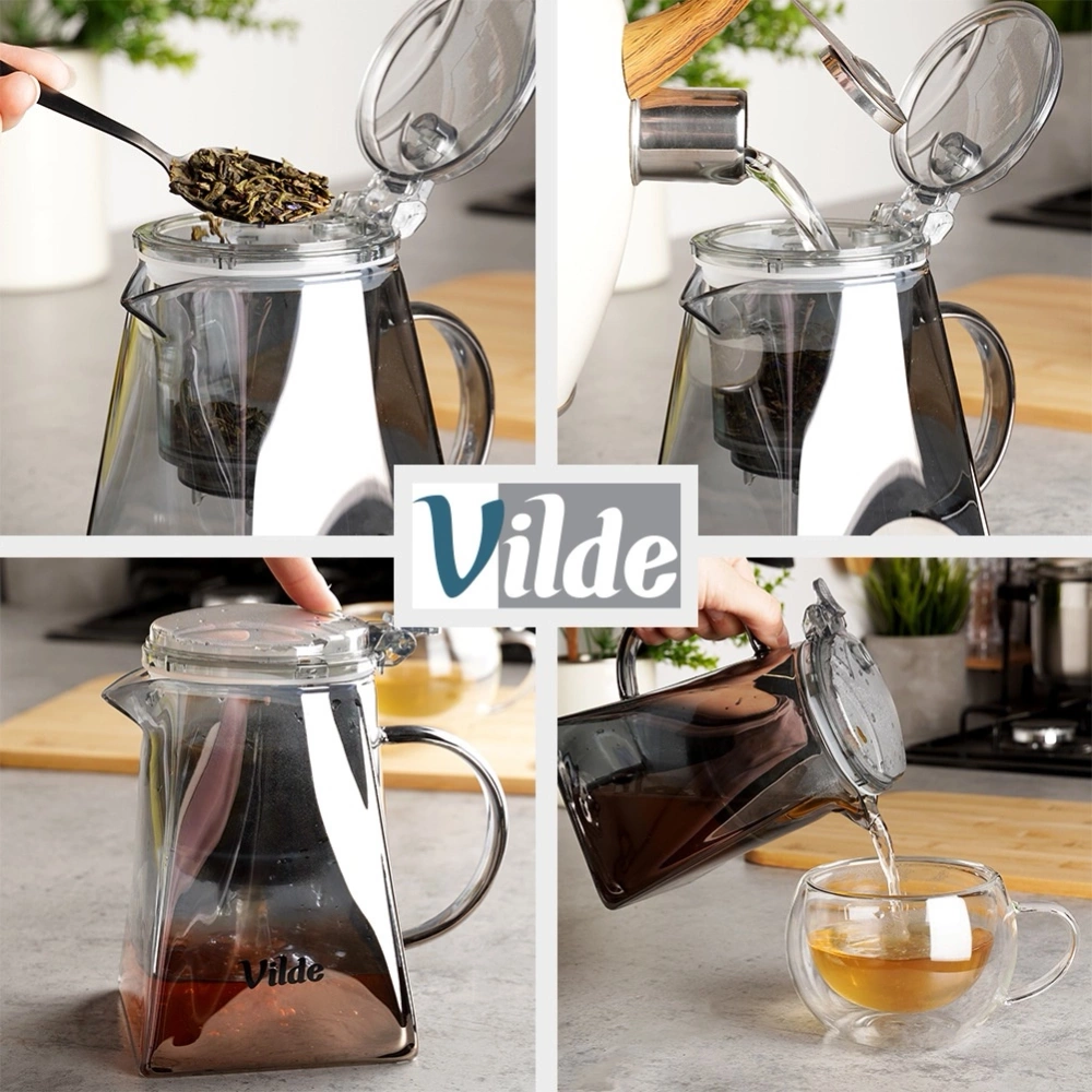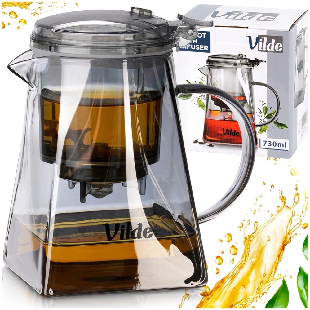 Szklany dzbanek z zaparzaczem to idealne, kompaktowe rozwiązanie do parzenia herbaty i ziół. Dzbanek posiada unikalnym systemem spustowym, który pozwala kontrolować moc esencji i od razu parzyć kolejną porcję. Dzięki temu systemowi oraz odporności na skrajne temperatury dzbanek ten jest wyjątkowo wygodny i uniwersalny w codziennym użytkowaniu. Oryginalny produkt marki Vilde. Wyprodukowano zgodnie z europejskimi standardami.