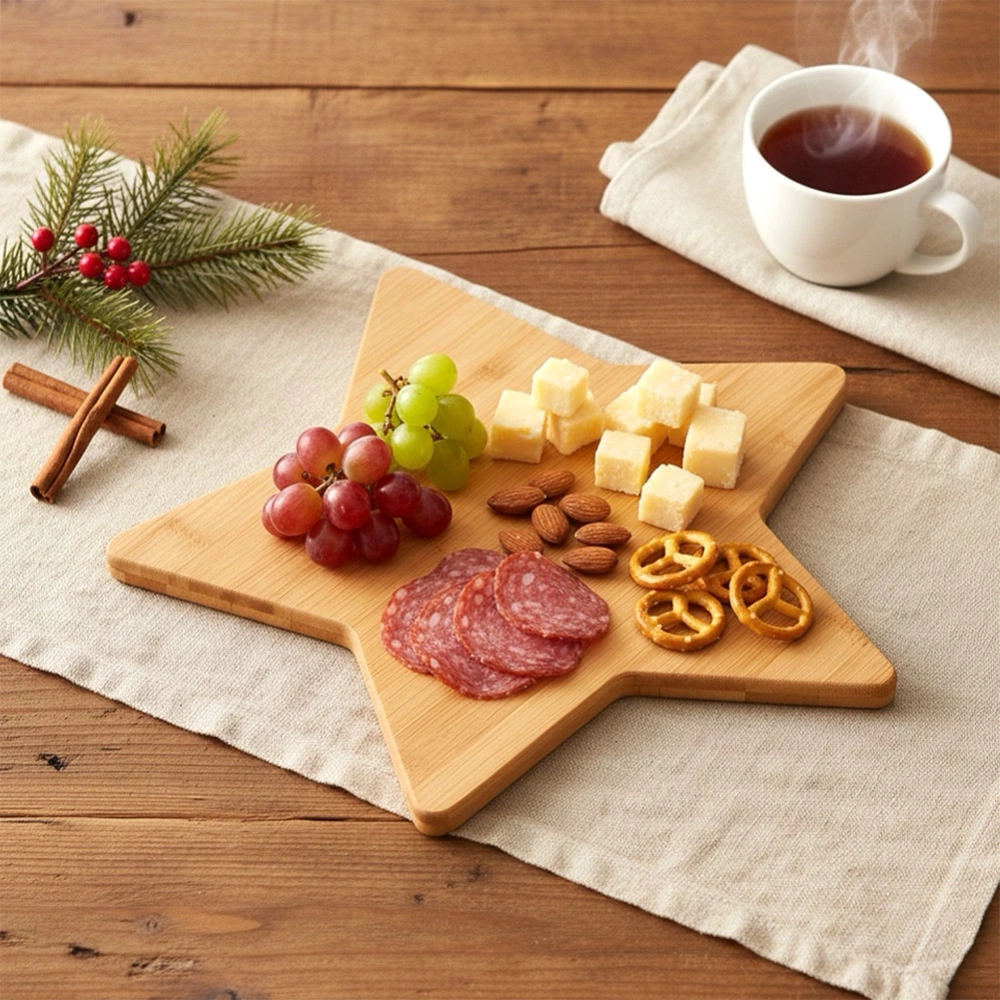 - Deska do serwowania w kształcie gwiazdy - Deska do serwowania w kształcie gwiazdy o wymiarach 36 x 36 cm. Idealna do podawania i krojenia serów, wędlin, owoców i innych przekąsek podczas zimowych i świątecznych spotkań.