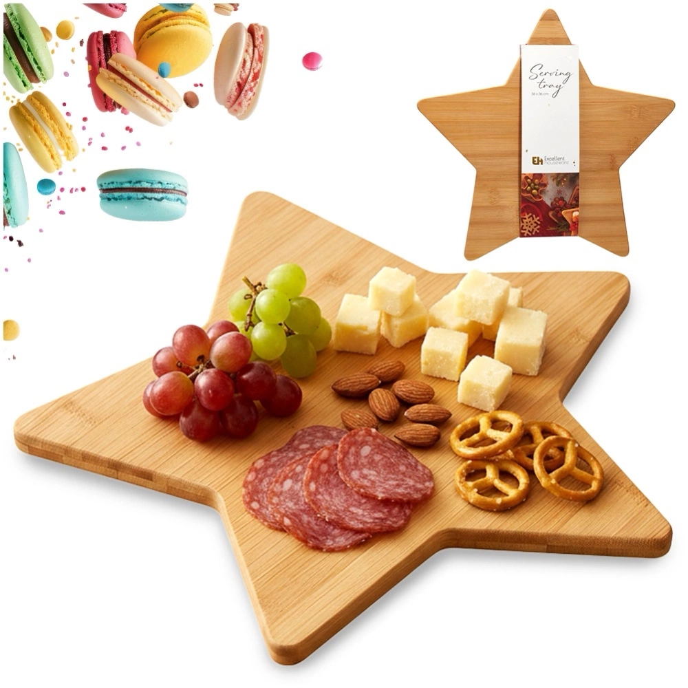- Taca w kształcie gwiazdy o wymiarach 36 x 36 cm. Wykonana jest z drewna bambusowego. Idealna do serwowania przekąsek, wędlin, owoców itp.