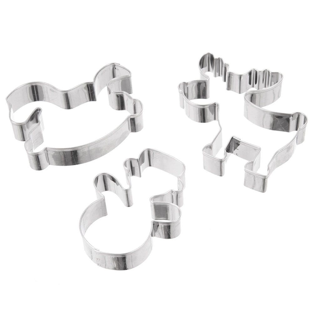 - Zestaw 3 szt. wykrawaczy do ciastek - Komplet wykrawaczy cukierniczych w kształcie bałwana, konika na biegunach oraz renifera Idealne do przygotowania ciasteczek i pierników ze świątecznym motywem. W zestawie: bałwan o wymiarach 6 x 4,5 x 1,5 cm, konik na biegunach o wymiarach 6,5 x 5 x 1,5 cm oraz renifer o wymiarach 7 x 6,5 x 1,5 cm.