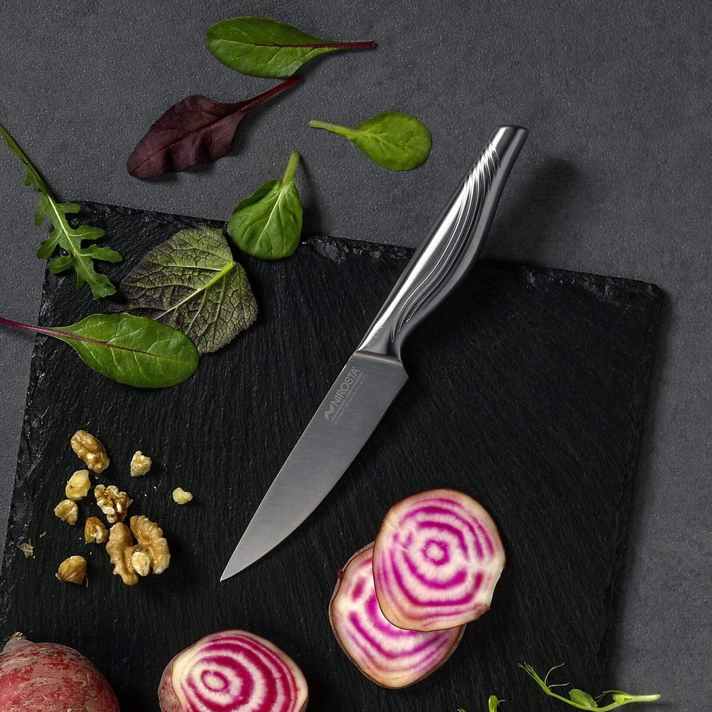 Nożyk do skrobania z serii Premium Swing od Nirosta to narzędzie, które łączy w sobie doskonałą jakość, precyzyjne wykonanie oraz elegancki design. Idealnie sprawdzi się w codziennym gotowaniu, umożliwiając łatwe krojenie, obieranie i dekorowanie mniejszych warzyw, owoców oraz ziół. Dzięki wysokiej jakości stali, nożyk zapewnia długotrwałą ostrość, co czyni go niezastąpionym w każdej kuchni.