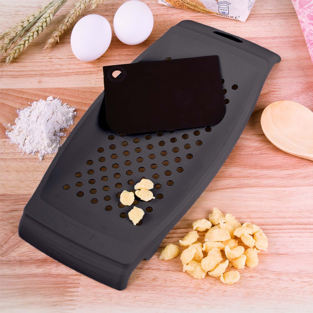 Ręczna szatkownica do szpecli idealnie nadaje się do przygotowywania klusek z serem, smażoną cebulą, szpinakiem, a także jako dodatek do niedzielnego pieczenia. Wystarczy równomiernie zetrzeć ciasto na powierzchnię tarki, a następnie gotować knöpfle w osolonej wodzie, aż wypłyną na powierzchnię.