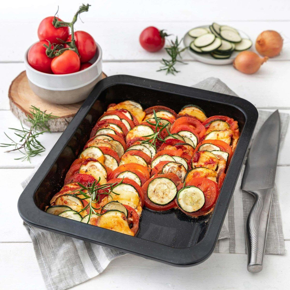 - Odkryj prostokątną formę do pieczenia od Zenker, która w mgnieniu oka pozwoli Ci stworzyć pyszne zapiekanki i lasagne, łącząc elegancję z funkcjonalnością – idealna do każdej kuchni!