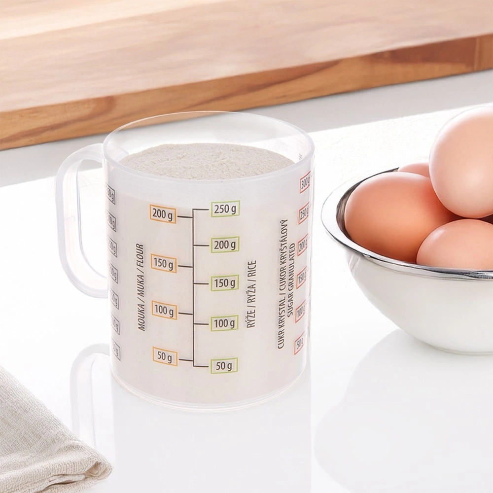 - Czytelna podziałka miarowa - Wyposażony w pięć wyraźnych podziałek, które umożliwią dokładne odmierzanie produktów takich jak mąka, cukier, ryż, sól czy płyny. Produkty można odmierzyć w l, ml i g.