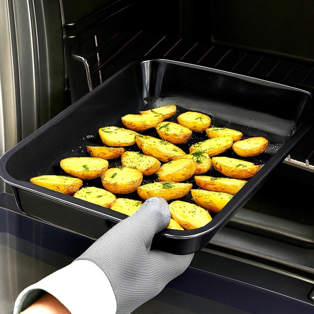 - Uniwersalne zastosowanie - Sprawdzi się do pieczenia ciast, ciasteczek, bułek, a także dań wytrawnych, takich jak pieczone mięso, zapiekanki, pizza, frytki czy warzywa. Blacha odpowiednia do piekarników elektrycznych oraz gazowych, doskonale sprawdzi się w codziennym użytkowaniu.