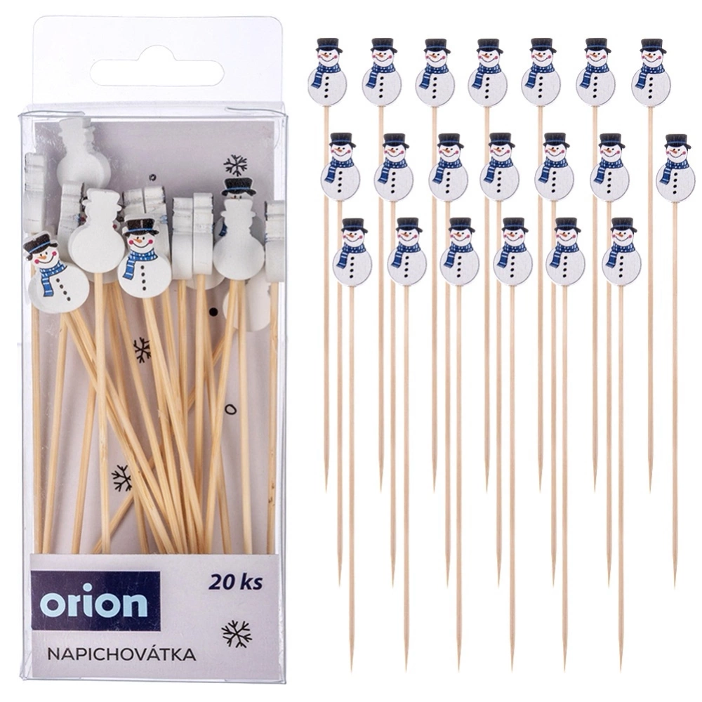 - Zestaw 20 wykałaczek do przekąsek - Zestaw dwudziestu wykałaczek z ozdobami w kształcie bałwanków. Doskonałe do serwowania słonych i słodkich przekąsek podczas przyjęć, spotkań i uroczystości. Każda wykałaczka ma długość 13 cm.
