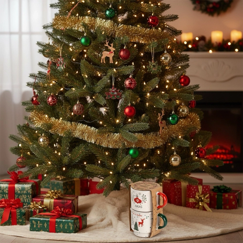 - Zestaw 2 kubków świątecznych - Zestaw dwóch kubków z uchem do picia napojów, świetnie sprawdzą się w codziennym użytku. Kubki mają pojemność maksymalną 350 ml i wymiary 13 x 9,5 x 9 cm. Kubki ozdobione są świątecznymi napisami i dekorem ('STAY WARM', 'LET IT SNOW'). Idealne do picia herbaty, kawy, kakao oraz innych napojów.