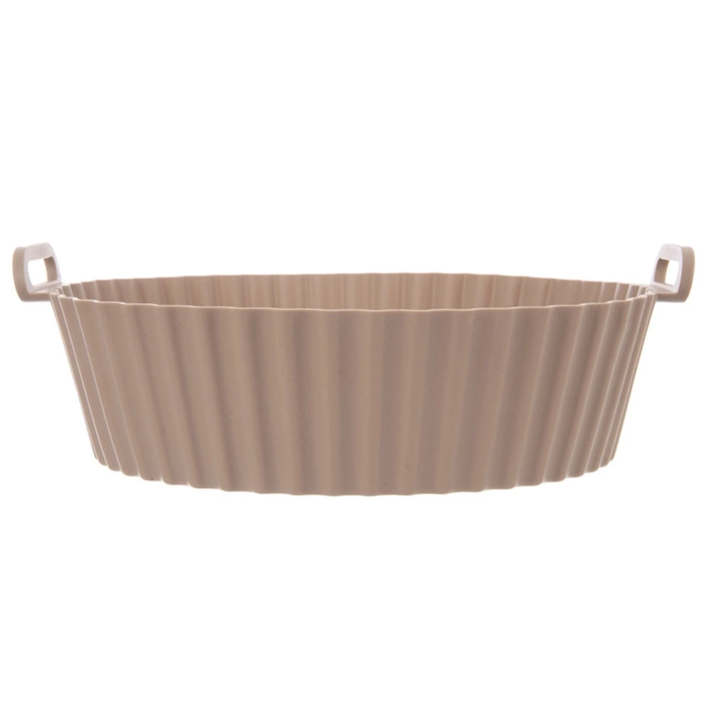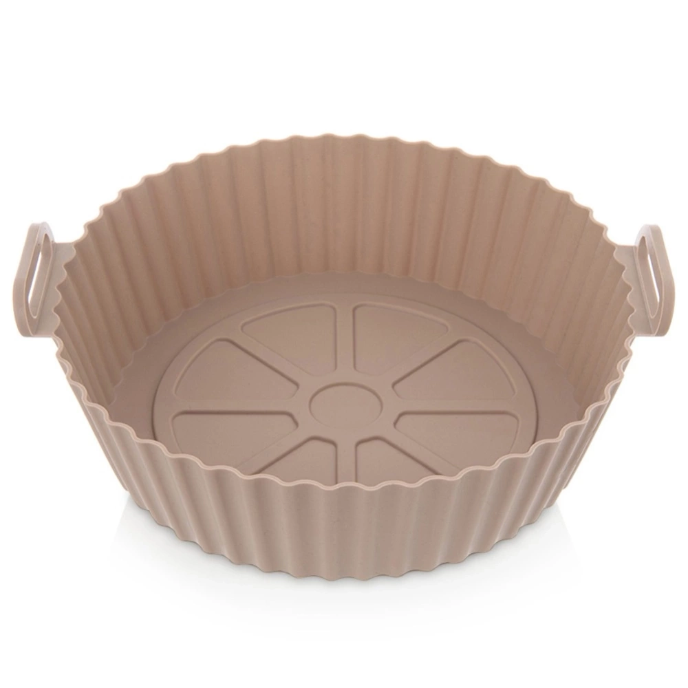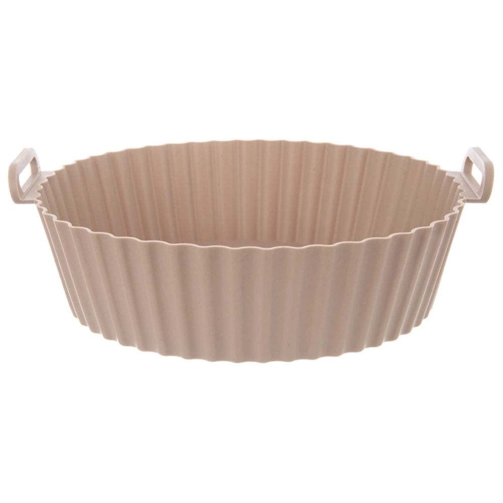 - Wielorazowy wkład do frytkownicy Air Fryer. Wykonany z silikonu w kolorze beżowym. Użyty silikon jest nieprzywierający. Odporny na wysokie temperatury.