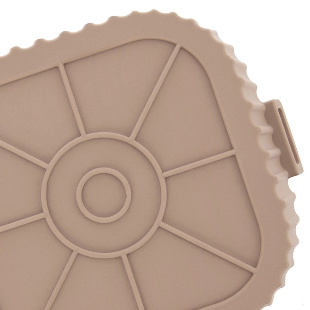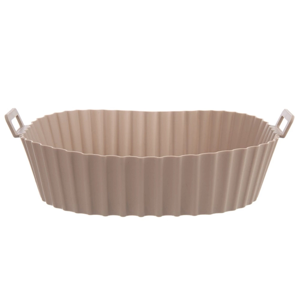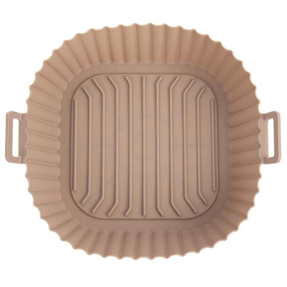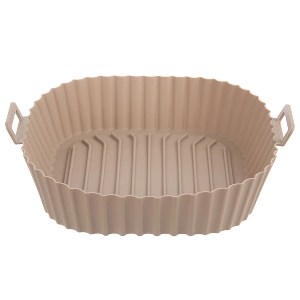 - Wielorazowy wkład do frytkownicy Air Fryer. Wykonany z silikonu w kolorze beżowym. Użyty silikon jest nieprzywierający. Odporny na wysokie temperatury.