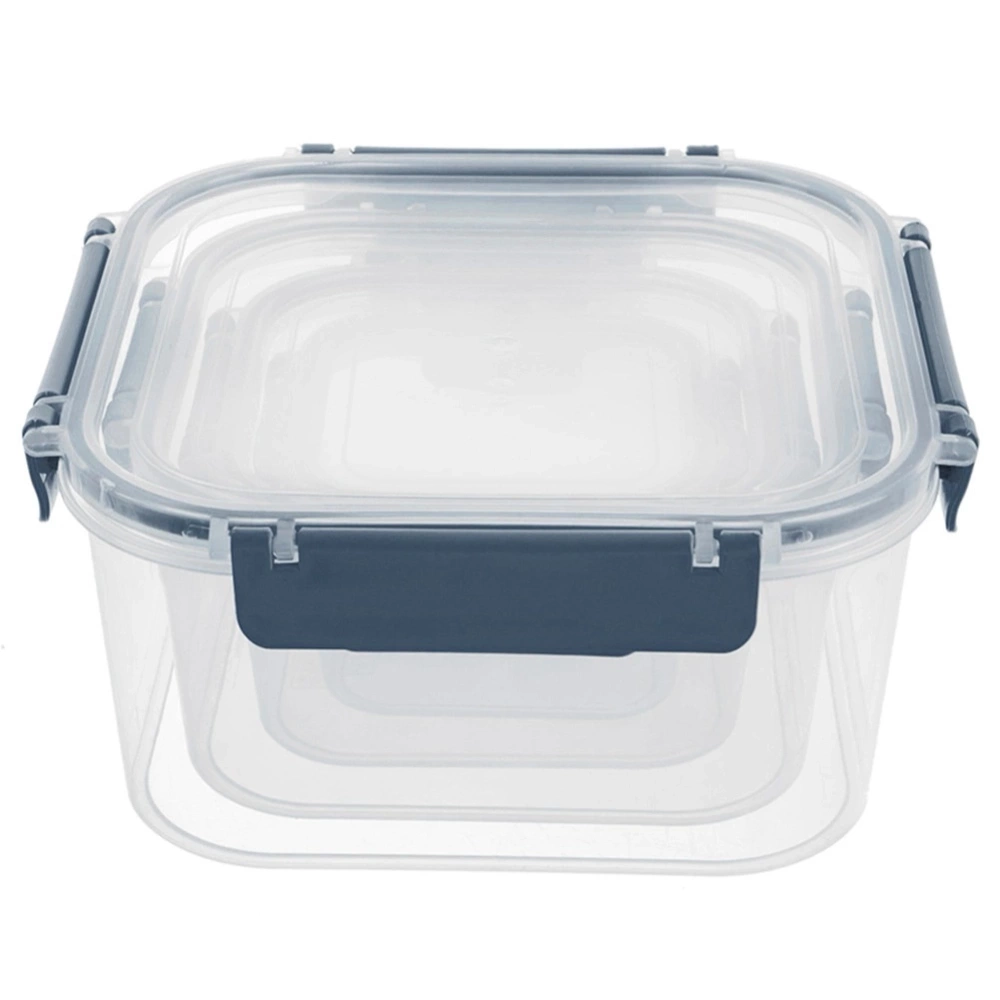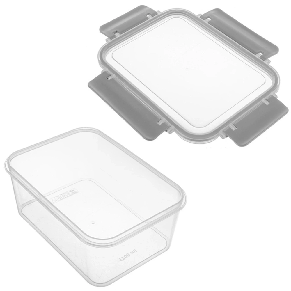 - Solidnie wykonane - Pojemniki wykonane z tworzywa w przezroczystym kolorze. Pokrywka wykonana również z przezroczystego tworzywa, posiada silikonową uszczelkę w kolorze granatowym. Przezroczysty kolor pozwoli na wygodne sprawdzenie zawartości pojemnika, bez konieczności otwierania go. Bezpieczne dla zdrowia i neutralne dla żywności - nie posiadają szkodliwego BPA (bisfenolu). Zamknięcia pojemnika występują w kolorze szarym i granatowym (wysyłamy losowo, brak możliwości wyboru).