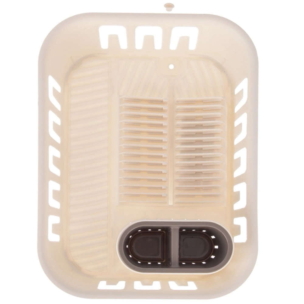 - Solidna i wytrzymała - Suszarka wykonana w całości z tworzywa w kolorze kremowym, a wyjmowany pojemnik na sztućce jest w kolorze brązowym. Dno suszarki zostało zaprojektowane tak, aby gromadzić ociekającą wodę, chroniąc blat kuchenny przed zamoczeniem, posiada miejsce które ułatwi odprowadzanie wody.