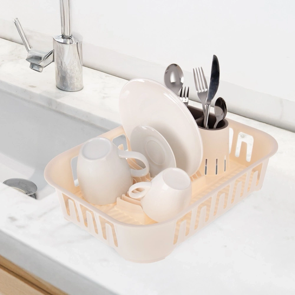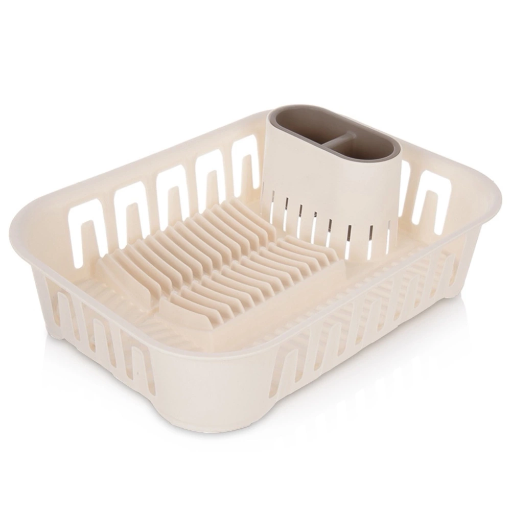 - Praktyczna suszarka do naczyń w kolorze kremowa. Posiada miejsce na 13 talerzy, sztućce, miseczki, szklanki oraz kubki. Wbudowany odpływ wody.