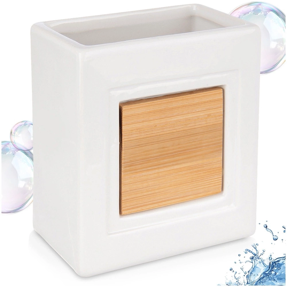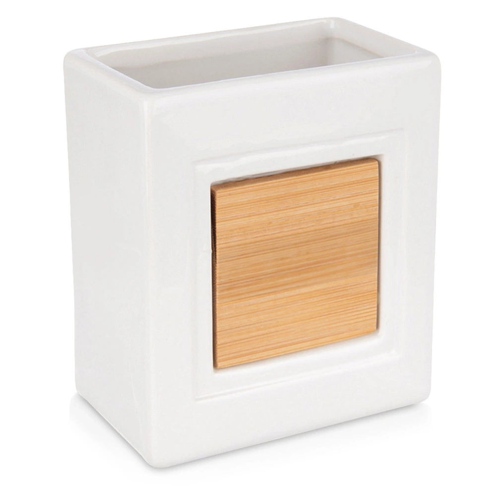 - Wykonany z dolomitu i bambusa - Kubek łazienkowy wykonany jest z najwyższej jakości trwałego dolomitu w białym kolorze. Posiada element dekoracyjny wykonany z drewna bambusowego.