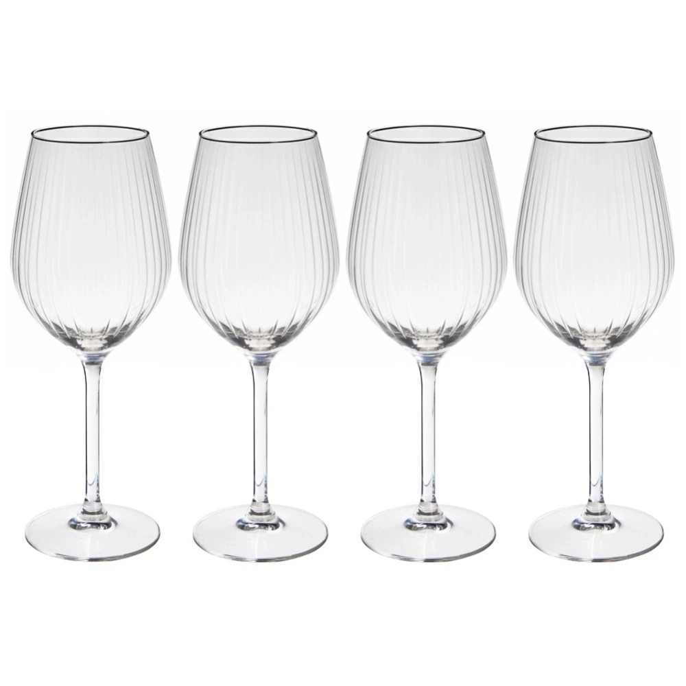 - Zestaw 4 szklanych kieliszków do czerwonego wina, ale sprawdzi się również do białego wina, wody i innych napojów. Kieliszki o pojemności 380 ml wykonane są ze szkła.