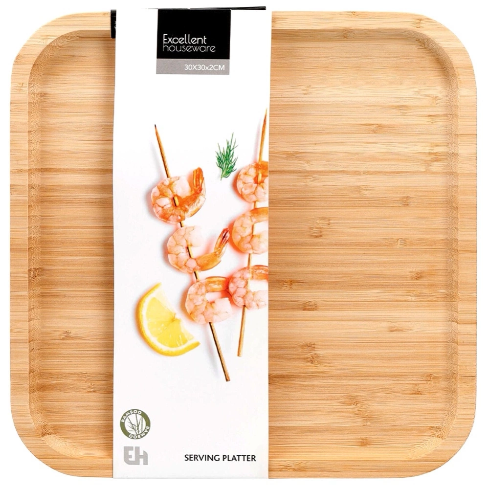 - Talerz wykonany z drewna bambusowego. Idealny do serwowania wszelkiego rodzaju przystawek, dań i deserów. Pięknie prezentuje się na stole.