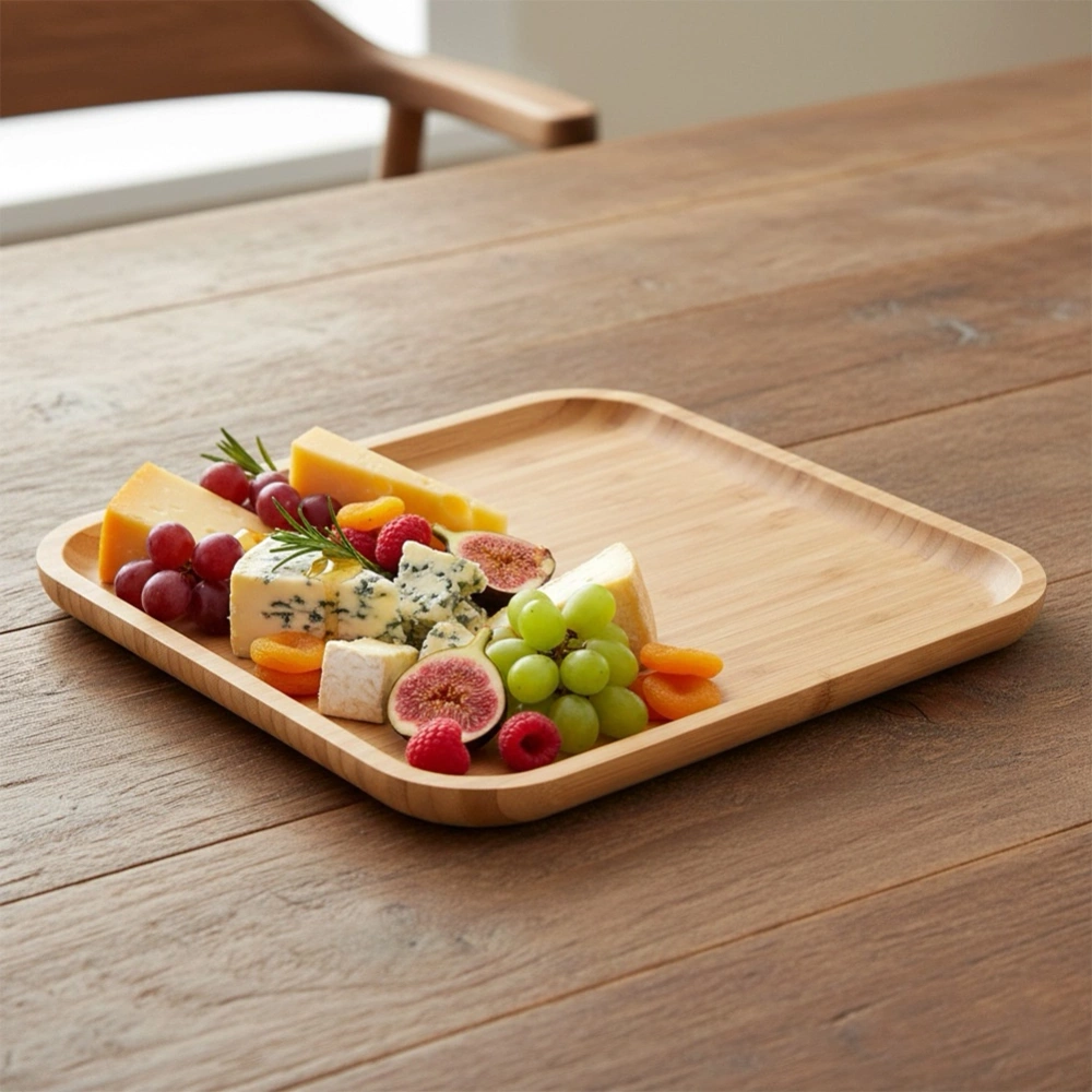 - Wykonana z drewna bambusowego - Wykonana jest w całości z naturalnego drewna bambusowego. Odpowiednio użytkowana posłuży długie lata. Odporna na temperaturę do 70°C. Może mieć bezpośredni kontakt z żywnością przez 2 godziny, co pozwala bezpiecznie podawać przekąski, sery, owoce czy ciasta.