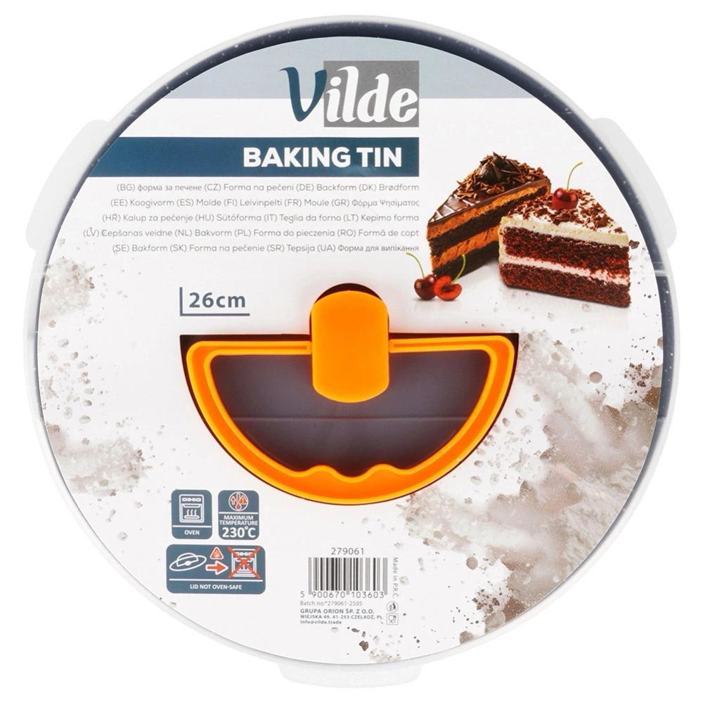 Okrągła tortownica do pieczenia ciast i tortów z praktyczną pokrywką do przenoszenia i przechowywania wypieków. Rozpinane boki zapewniają wygodne wyciąganie upieczonego ciasta, a wyjmowane dno ułatwia czyszczenie formy. Pokrywka chroni ciasto przed wysychaniem i ułatwia jego transport. Niezbędna w każdym domu. Wykonana z najwyższej jakości materiałów, co zapewnia komfort użytkowania. Oryginalny produkt marki Vilde. Wyprodukowano zgodnie z europejskimi standardami.
