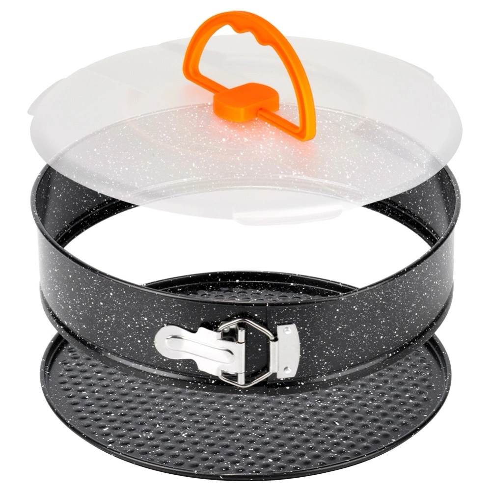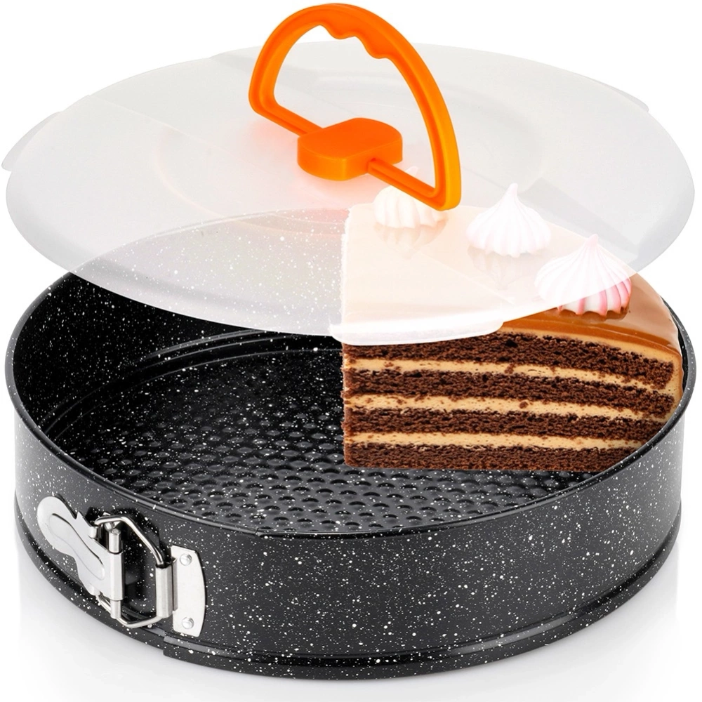 - Okrągła forma do pieczenia ciast z granitową powłoką. Brzegi tortownicy są rozpinane. W zestawie pokrywka z uchwytem do przenoszenia i przechowywania wypieków.