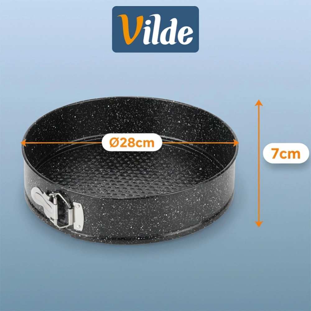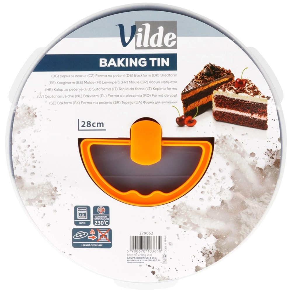 Okrągła tortownica do pieczenia ciast i tortów z praktyczną pokrywką do przenoszenia i przechowywania wypieków. Rozpinane boki zapewniają wygodne wyciąganie upieczonego ciasta, a wyjmowane dno ułatwia czyszczenie formy. Pokrywka chroni ciasto przed wysychaniem i ułatwia jego transport. Niezbędna w każdym domu. Wykonana z najwyższej jakości materiałów, co zapewnia komfort użytkowania. Oryginalny produkt marki Vilde. Wyprodukowano zgodnie z europejskimi standardami.