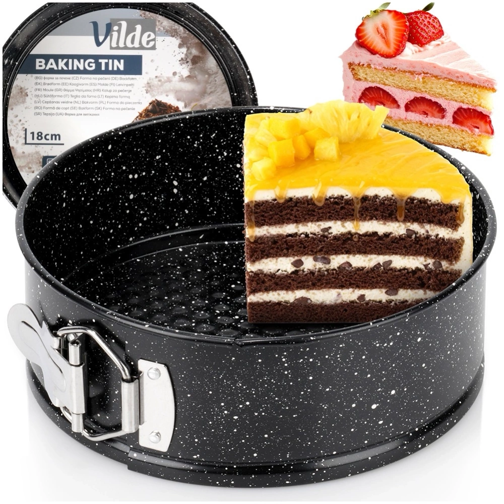 Okrągła tortownica do pieczenia ciast i tortów. Rozpinane boki zapewnią wygodne wyciąganie upieczonego ciasta, ale także przydadzą się podczas mycia formy. Niezbędna w każdym domu. Wykonana z najwyższej jakości materiałów, co zapewni komfort użytkowania. Oryginalny produkt marki Vilde. Wyprodukowano zgodnie z europejskimi standardami.