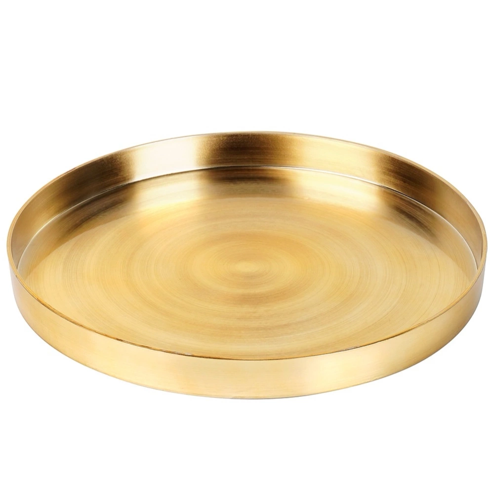 - Efektowna podstawka do eksponowania kompozycji dekoracyjnych, biżuterii oraz świec. Podstawka ma średnicę 32 cm i złoty kolor.