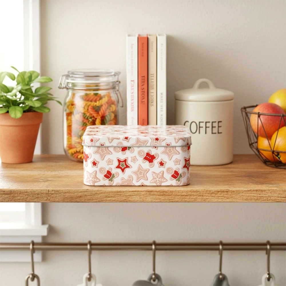 - Pojemnik w formie puszki ze świątecznym motywem - Praktyczna puszka do przechowywania ciasteczek, słodyczy, herbaty oraz drobiazgów. Idealna do wykorzystania w kuchni, biurze lub jako ozdobne pudełko prezentowe. Pojemnik ma wymiary 15 x 15 x 6,5 cm.