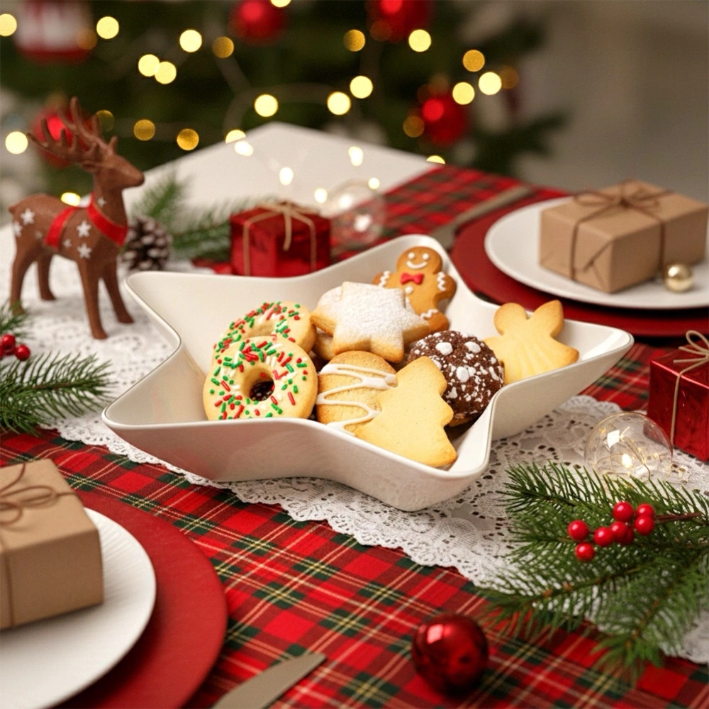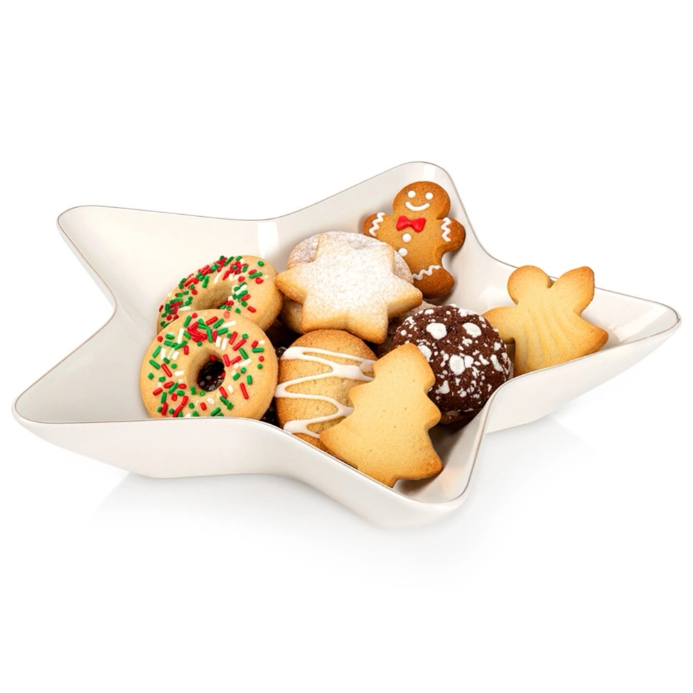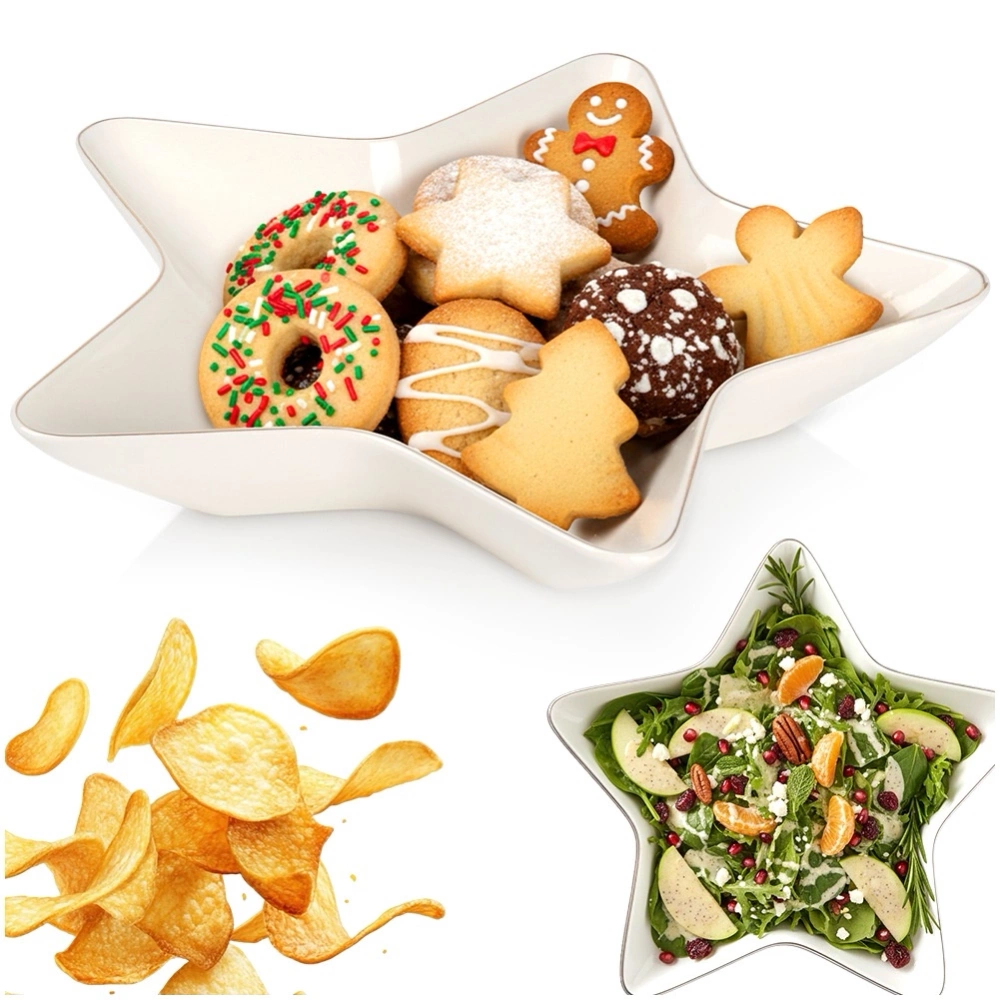 - Elegancki porcelanowy półmisek w kształcie gwiazdy ze złotym wykończeniem. Idealny do serwowania słodyczy, owoców i świątecznych potraw.