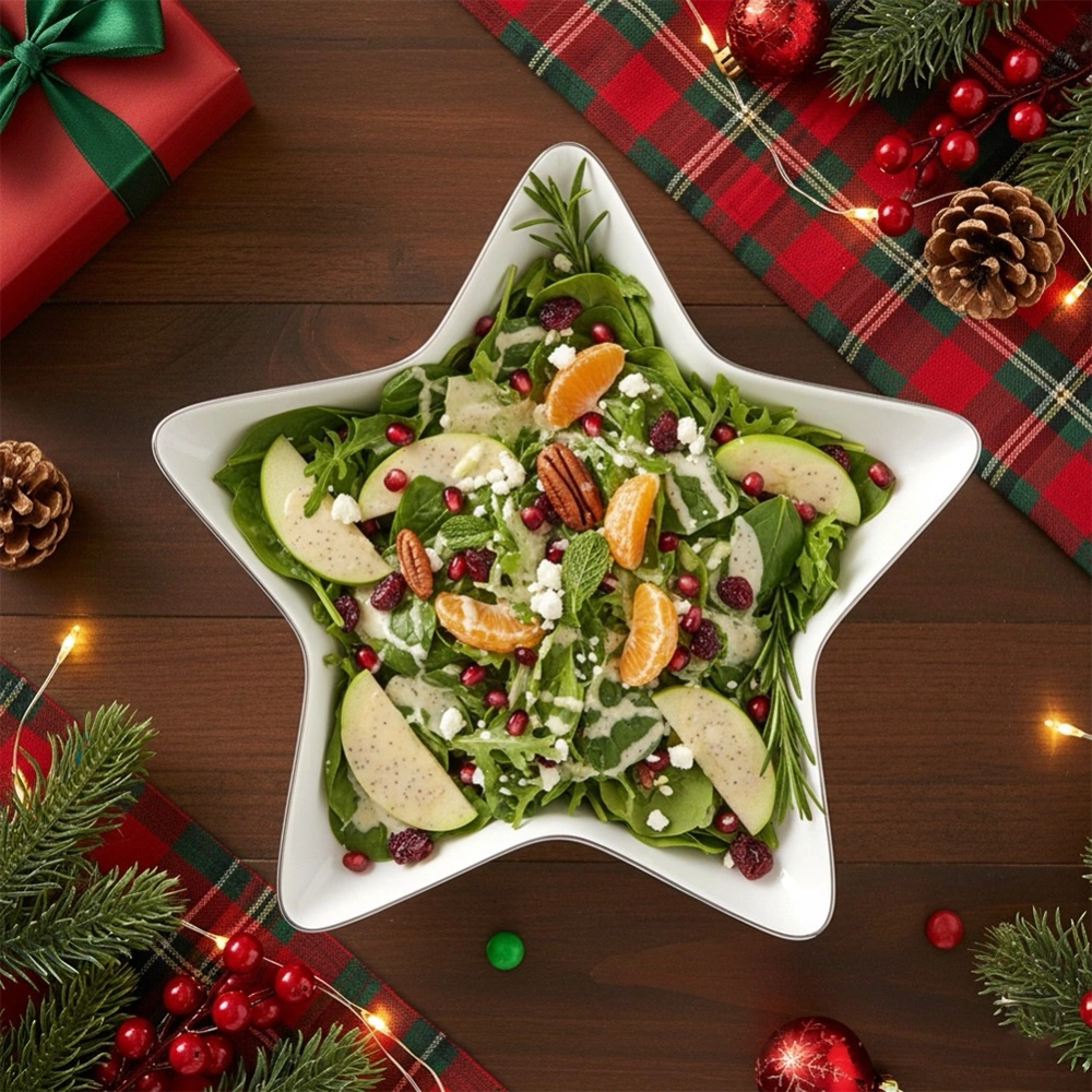 - Półmisek porcelanowy w kształcie gwiazdy - Elegancki półmisek o wymiarach 30 x 30 x 5 cm, idealny do serwowania ciasteczek, owoców, słodyczy lub przekąsek. Oryginalny kształt gwiazdy sprawia, że doskonale prezentuje się na stole podczas spotkań i uroczystości.