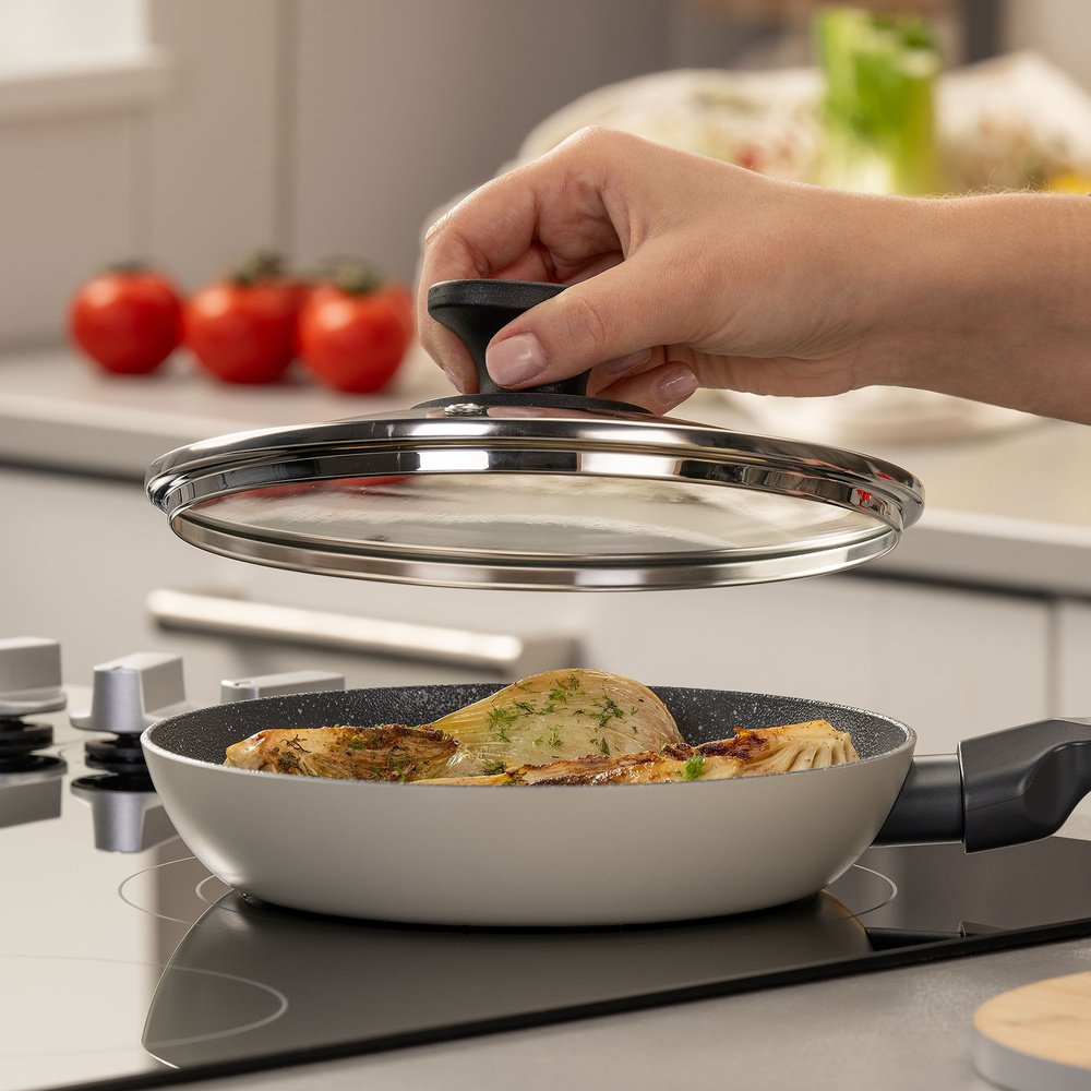 Szklana pokrywka doskonale sprawdzi się podczas gotowania, duszenia oraz pieczenia, umożliwiając kontrolowanie procesu bez konieczności podnoszenia pokrywki.