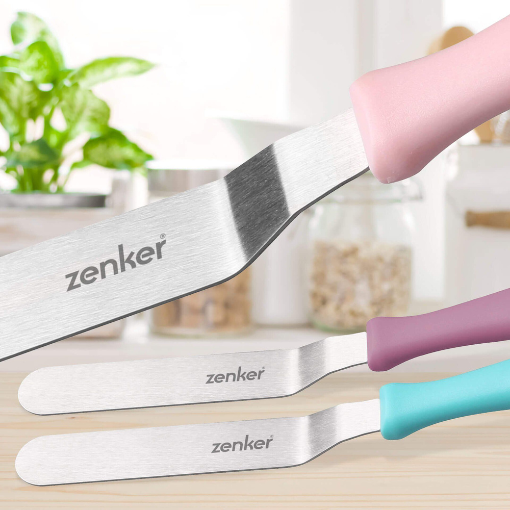 Odkryj radość z dekorowania tortów dzięki wygiętej szpatułce do dekoracji od Zenker w modnym kolorze Frozen Rose. Ta elegancka szpatułka o długości około 22 cm sprawi, że Twoje tortowe marzenia staną się rzeczywistością. Dzięki wygiętej części roboczej z wysokiej jakości stali nierdzewnej, z łatwością rozprowadzisz masę maślaną, śmietanę i inne pyszności na swoich wypiekach. ✔