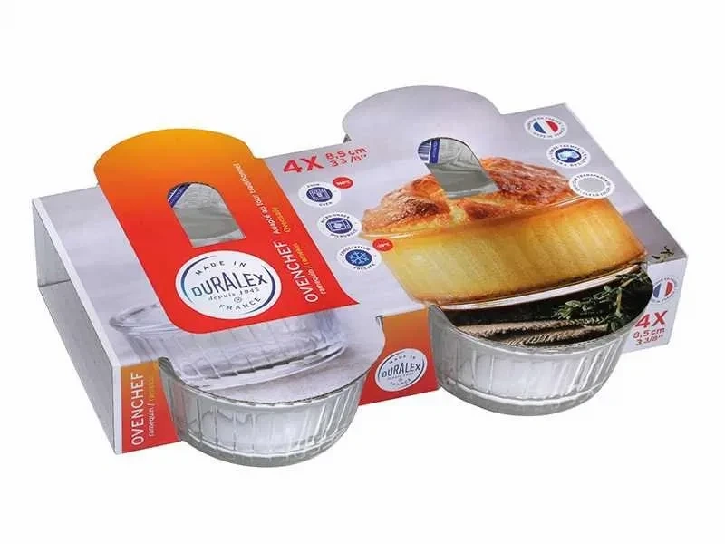 Miseczka DURALEX Rameqin to zestaw czterech żaroodpornych naczyń wykonanych z hartowanego szkła. Oferują pojemność 130 ml oraz średnicę 8,5 cm, co sprawia, że są idealne do serwowania przystawek, zup czy deserów. ⭐