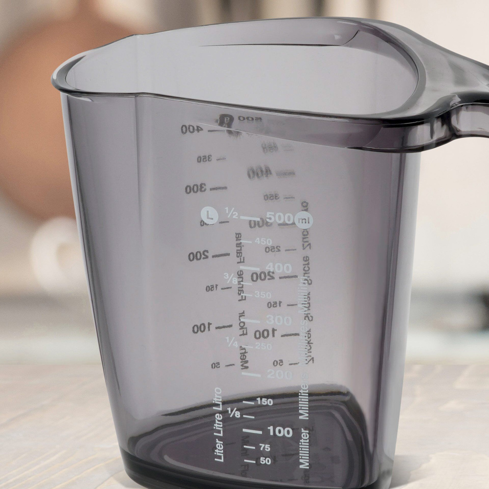 Wykonana z tworzywa sztucznego odpornego na uderzenia, miarka charakteryzuje się czytelnymi jednostkami miary – litrami, mililitrami i gramami – co ułatwia korzystanie z niej. Dodatkowo, przezroczysty niebieski kolor oraz wylewka odporna na kapanie sprawiają, że korzystanie z niej to czysta przyjemność.