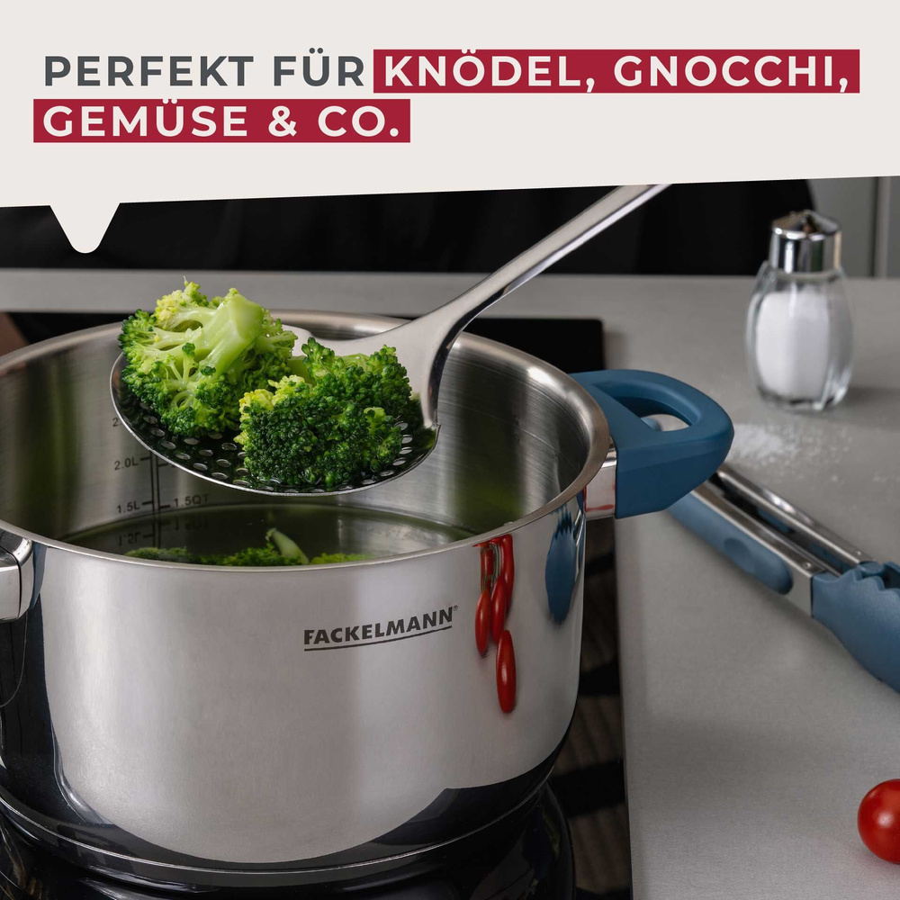 Łyżka do odcedzania Essential, niebieska - idealne narzędzie do gotowania  FACKELMANN