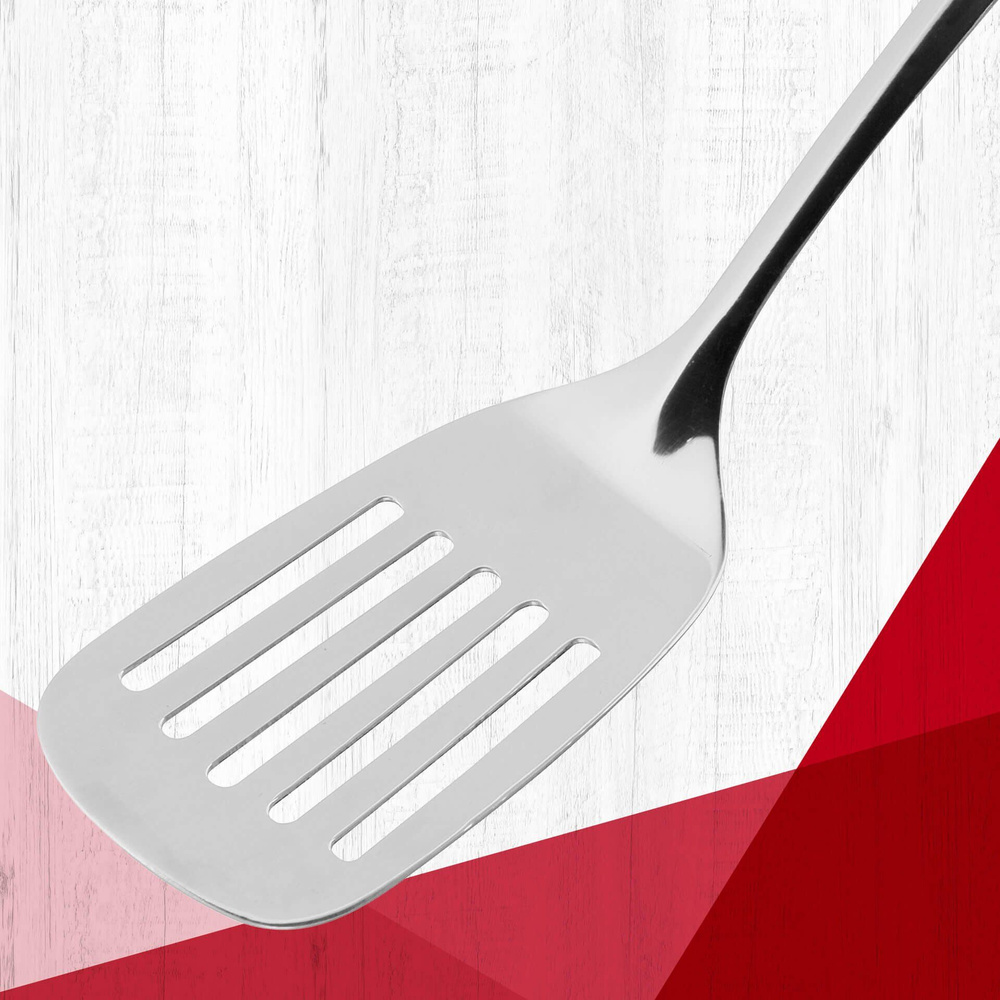 Łopatka do patelni Lara ze stali nierdzewnej to niezastąpiony element wyposażenia każdej kuchni. Dzięki swojej płaskiej konstrukcji, umożliwia bezpieczne przewracanie potraw, co sprawia, że przypieczona skórka łatwo oddziela się od dna naczynia. Zintegrowane szczeliny skutecznie redukują pryskanie tłuszczu, co czyni gotowanie jeszcze bardziej komfortowym.