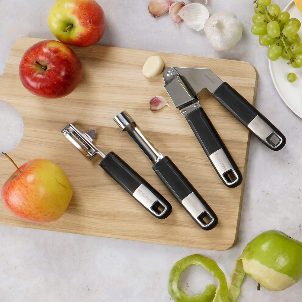 Wystarczy włożyć obrany ząbek czosnku do koszyka z sitkiem i ścisnąć uchwyt, aby cieszyć się świeżym czosnkiem w swoich daniach. Wysokiej jakości uchwyt Soft-Touch zapewnia komfort użytkowania, co sprawia, że praska jest nie tylko funkcjonalna, ale i przyjemna w użyciu.