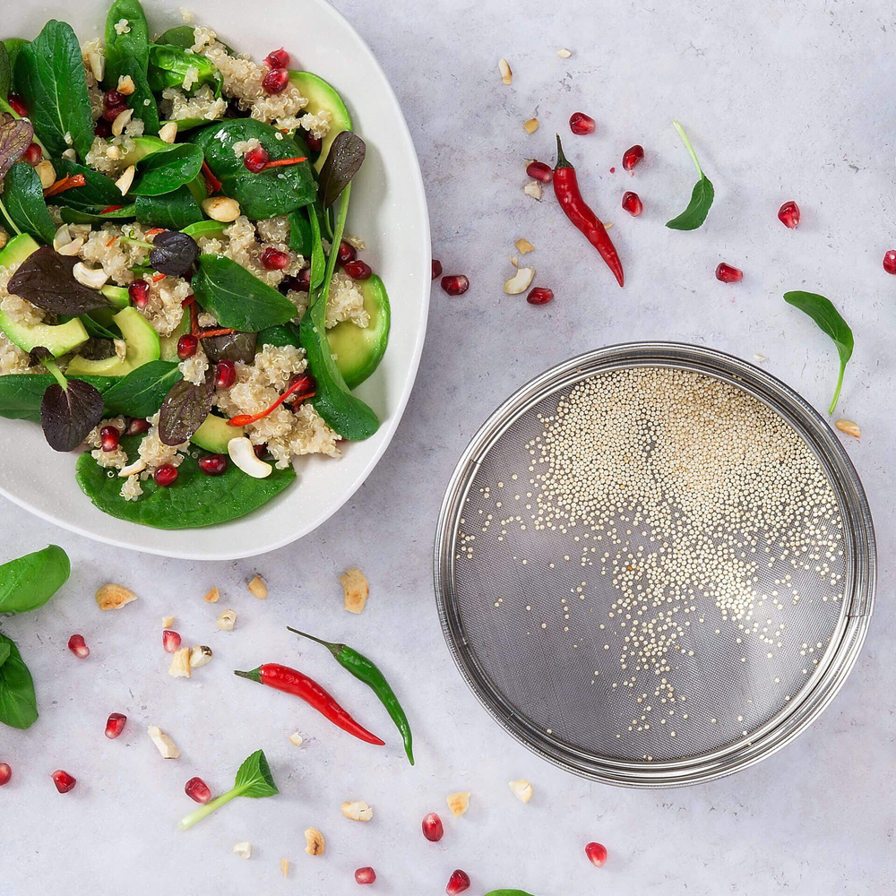 Sitko doskonale nadaje się do mycia komosy ryżowej, nasion chia, ryżu oraz przesiewania mąki i cukru. Dzięki swojej konstrukcji, skutecznie usuwa resztki saponin, co pozwala cieszyć się pełnym smakiem składników.