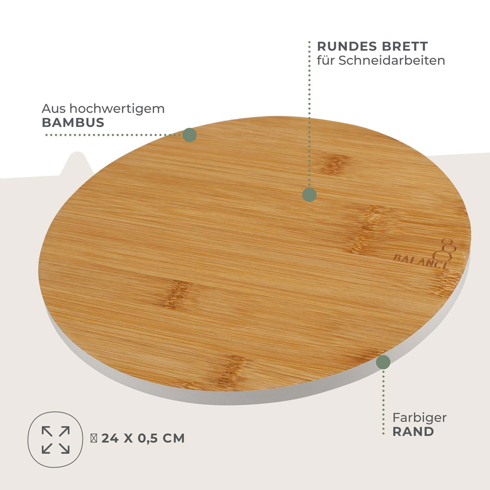 Okrągła deska do krojenia Balance to idealne rozwiązanie dla każdego, kto ceni sobie wygodę i jakość w kuchni. Dzięki średnicy 24 cm, szybko pokroisz wszystkie składniki, od warzyw po owoce.