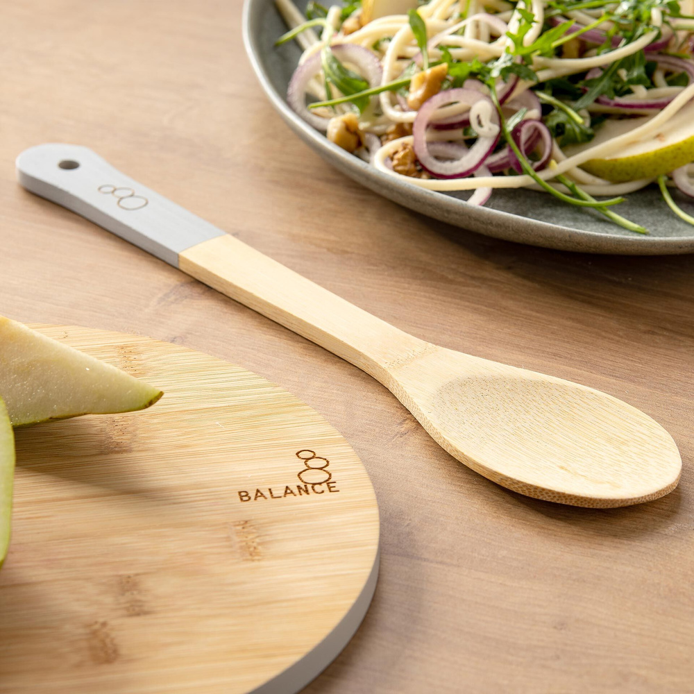 Ekologiczna, stylowa i praktyczna łyżka do gotowania z 100% certyfikowanego bambusa FSC™ to must-have w każdej kuchni. Idealna do mieszania i serwowania potraw, jest delikatna dla powlekanych patelni, co sprawia, że nie musisz się martwić o zarysowania. Uchwyt w modnym kolorze Mineral Grey dobrze leży w dłoni, co zapewnia komfort podczas gotowania. Dzięki niej zupy, sałatki czy zapiekanki można szybko ugotować i podać.