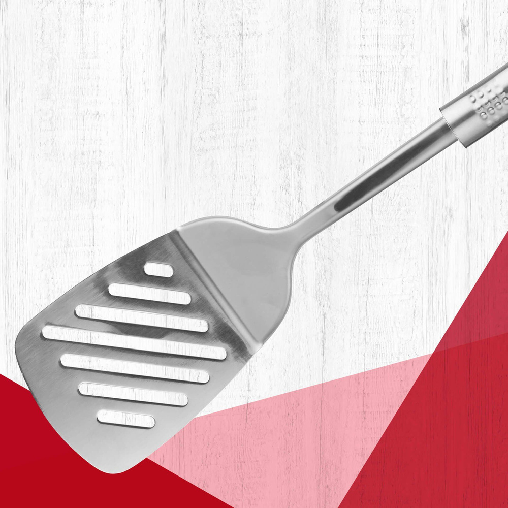 - Odkryj wygodę gotowania z łopatką z otwartą rączką – trwałe akcesorium ze stali nierdzewnej, które ułatwi obracanie potraw i zbieranie sosów, a dzięki ergonomicznemu kształtowi zapewni komfort w każdej kuchni!