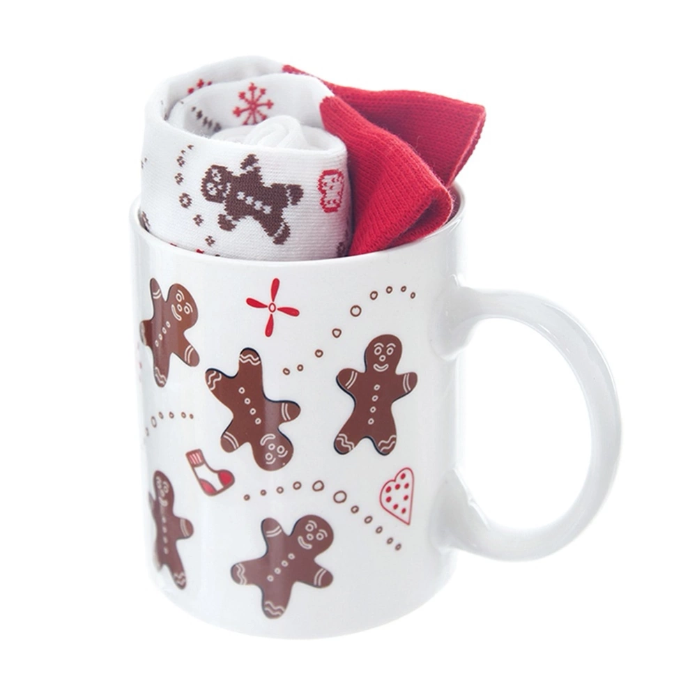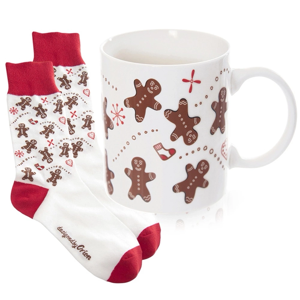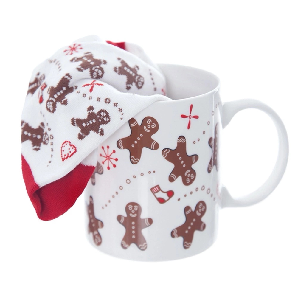 - Kubek o pojemności 350 ml w komplecie z miękkimi, wygodnymi skarpetami z motywem piernikowych ludzików. Wykonany z ceramiki. Idealny pomysł na upominek.