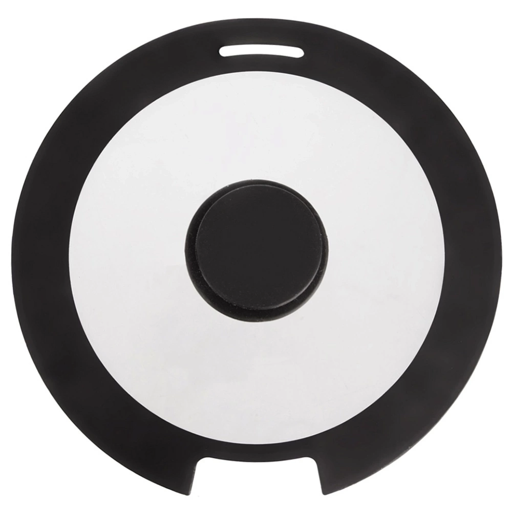 - Pokrywka szklana z silikonową obręczą, odpowiednia do garnków o średnicy 26 cm. Wyposażona jest w specjalny otwór, który pozwala na uwolnienie nadmiaru pary.