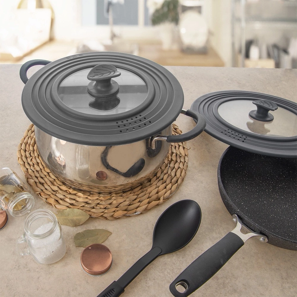 - Wygodna w użytkowaniu - Pokrywka posiada silikonowy, ergonomiczny uchwyt ułatwiający podnoszenie. Dzięki swojej konstrukcji pasuje do naczyń o różnych średnicach, co czyni ją bardzo praktycznym dodatkiem do kuchni.