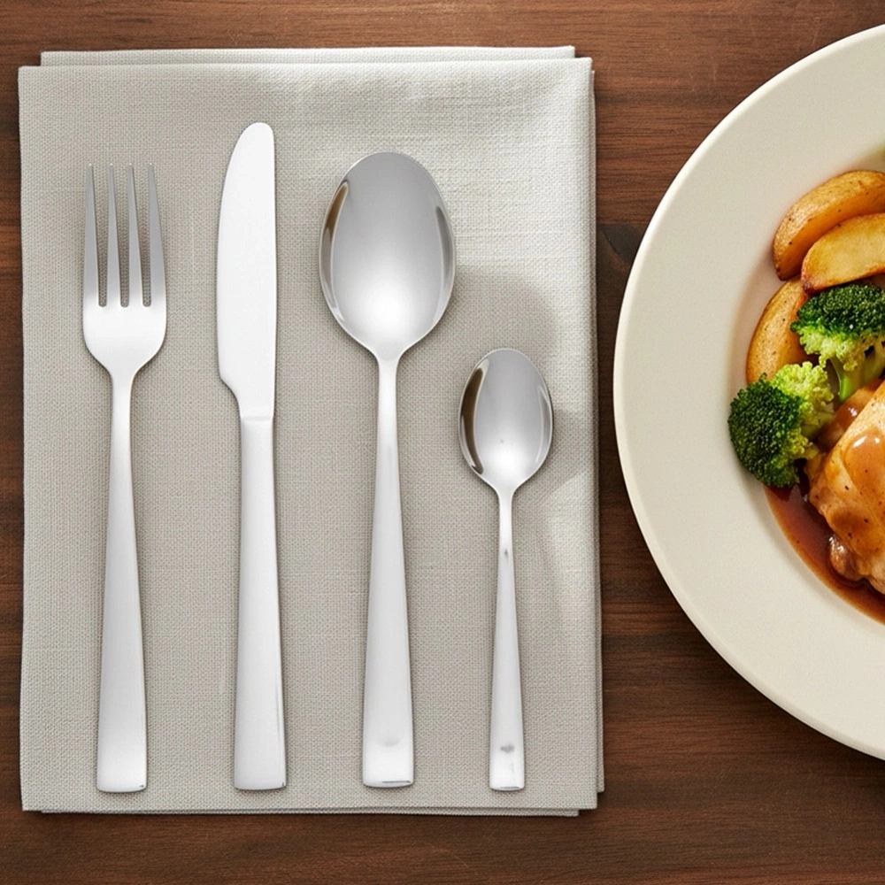 - Wygodne czyszczenie - Zestaw sztućców jest łatwy w utrzymaniu czystości, gdyż nadaje się do mycia w zmywarce do naczyń, jednak dla zachowania idealnego wyglądu zaleca się mycie ręczne.
