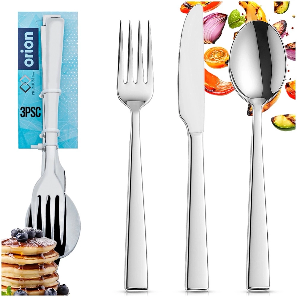 Zestaw sztućców dla jednej osoby składający się z trzech elementów. Niezwykle elegancko prezentują się na stole. Utrzymane w modnej kolorystyce. Będą pięknie prezentować się zarówno z zastawą klasyczną, jak i nowoczesną. Sprawdzą się na co dzień, jak również na specjalne okazje, uroczyste obiady czy przyjęcia. Oryginalny produkt czeskiej marki Orion. Wyprodukowano zgodnie z europejskimi standardami.