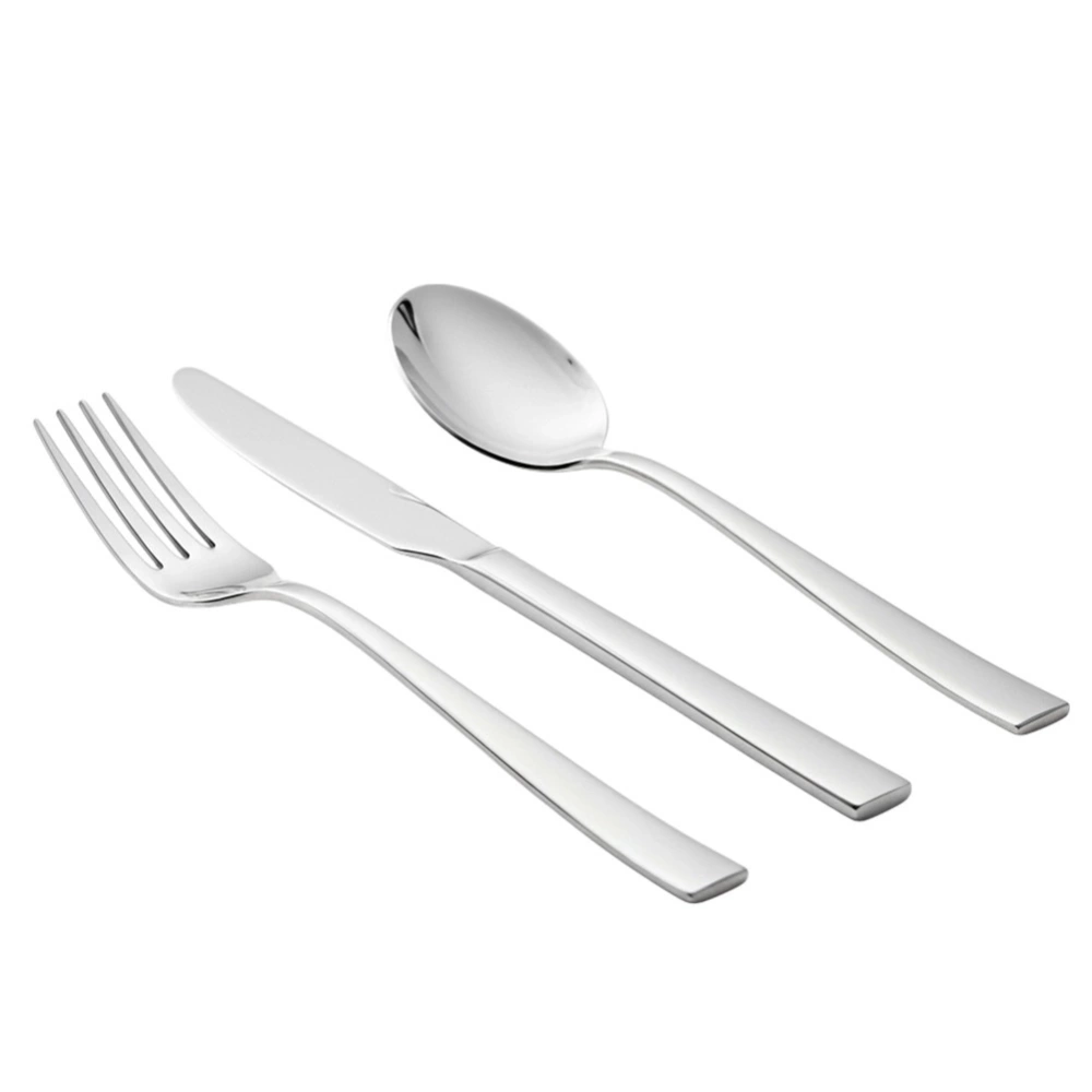 - Zestaw sztućców dla jednej osoby wykonanych ze stali nierdzewnej w błyszczącym, srebrnym kolorze. W zestawie: łyżka, widelec i nóż obiadowy.