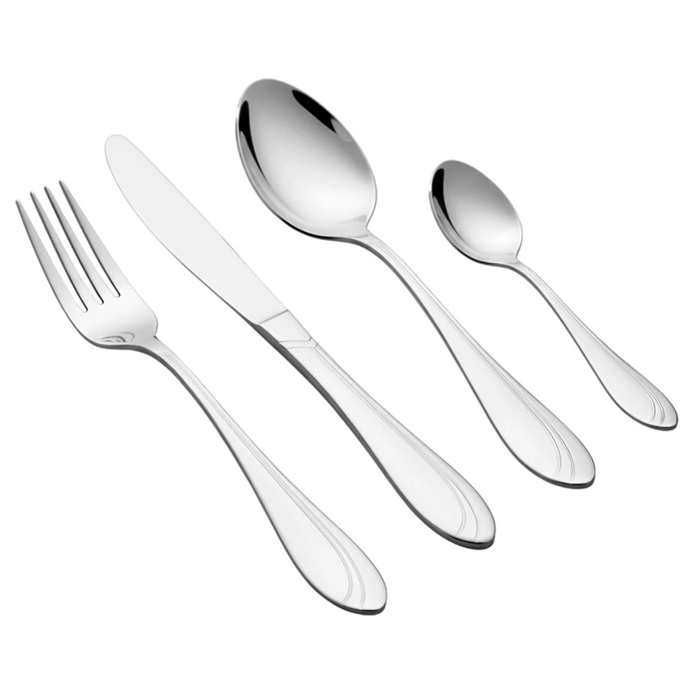 - Zestaw sztućców dla 6 osób - Praktyczny komplet sztućców idealny dla sześciu osób. W zestawie 24 elementy: łyżka o długości 20 cm, widelec o długości 21 cm, nóż o długości 22,5 cm i łyżeczka o długości 14,5 cm.