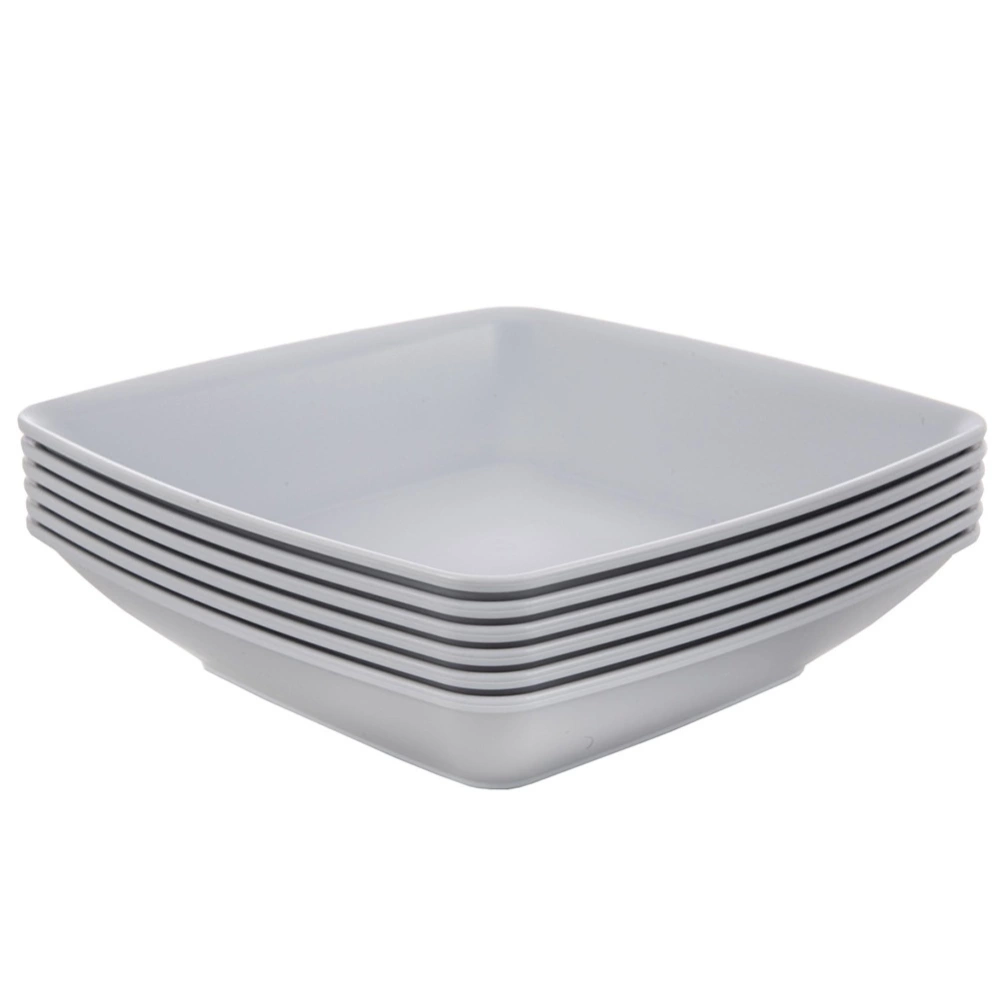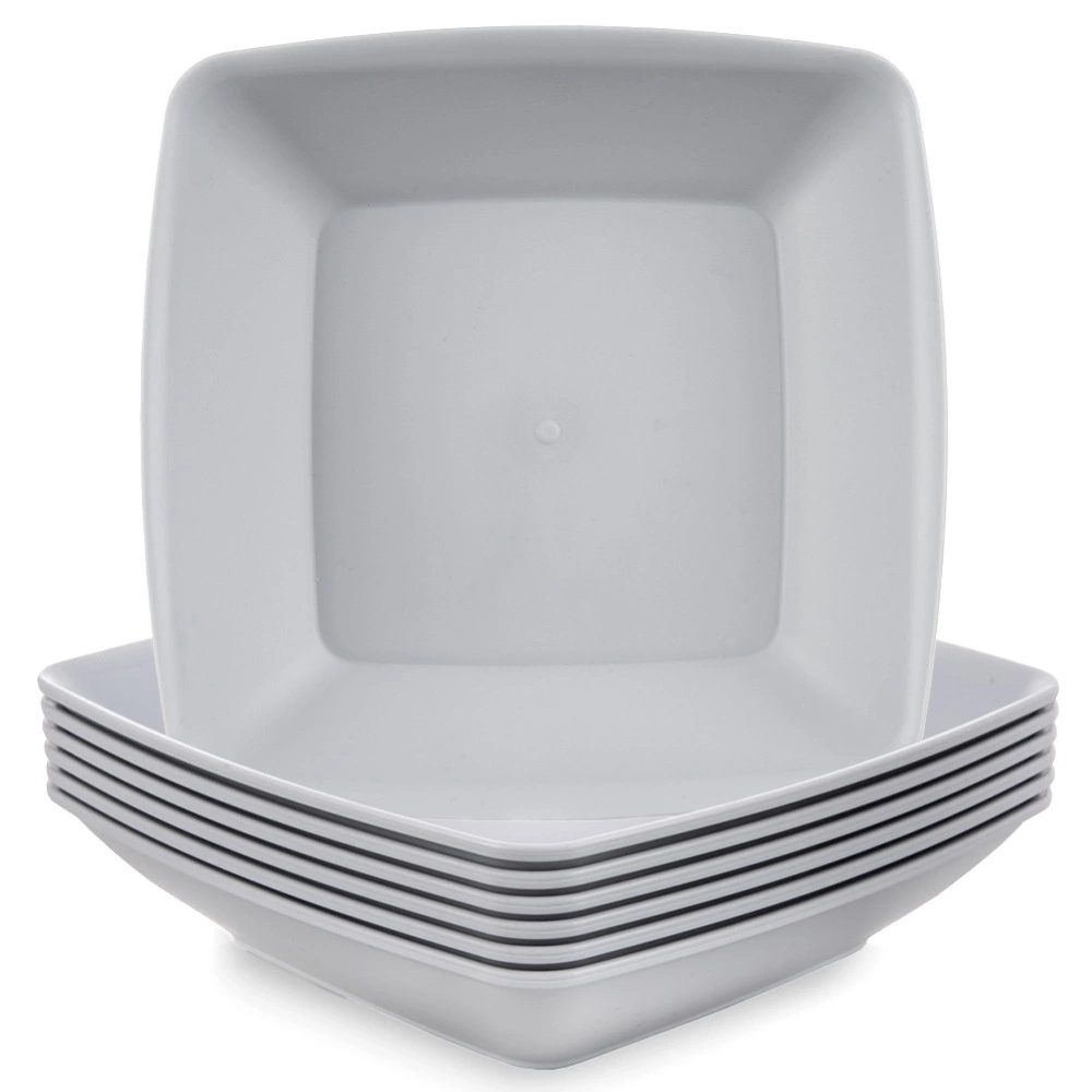 - Zestaw 6 plastikowych talerzy obiadowych głębokich - Kompletny zestaw sześciu lekkich, a jednocześnie wytrzymałych talerzy obiadowych głębokich w kwadratowym kształcie. Idealne do serwowania zup, potraw jednogarnkowych, sałatek czy przekąsek w domu i w plenerze. Talerz ma wymiary 17,5 x 17,5 x 4,7 cm i pojemność 500 ml. Talerze z serii Sandy.